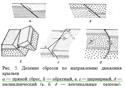 косые (ориентированные под углом к простиранию пород) | несогласные (порода и смеситель наклонены в противополож. стороны) | обратные (лежачее крыло перемещается вниз) | радиальные | постседиментационные |