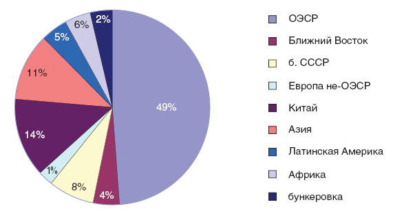В 2007 году добыча нефти снизилась на 0,2% - до 3,6 млрд. тонн. По сравнению с 2006 г. межрегиональные поставки нефти, по данным “ВP”, увеличились на 2,6% и достигли 1984 млн. т