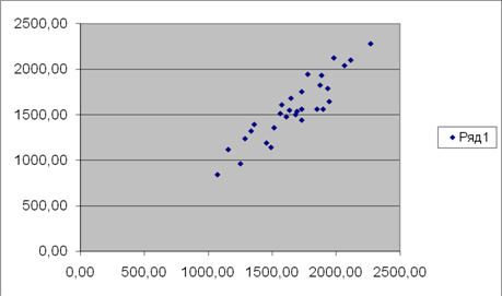 | По столбцу "Среднегодовая стоимость основных производственных фондов, млн.руб." | По столбцу "Выпуск продукции, млн.руб" | ||