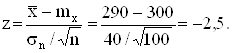 Мы видим, что наблюдаемое значение z = - 2,5 нe принадлежит интервалу [-2,33;¥), поэтому гипотезу нужно отвергнуть.