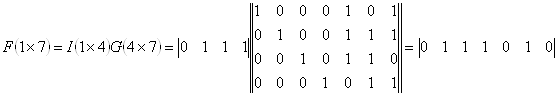 При виникненні помилки в першому розряді повідомлення воно матиме вигляд 1111010, здійснимо перевірку, для чого використаємо перевірочну матрицю